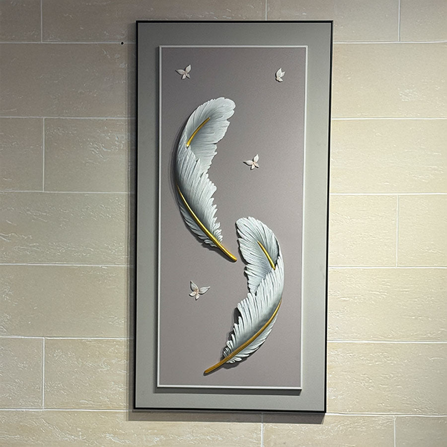 Golden Whisper Feather Wall Art brings sophisticated elegance to any interior space. This meticulously crafted piece features delicate feather detailing with warm golden accents that catch light beautifully, creating subtle dimension on your walls. Perfect for contemporary, minimalist, or eclectic décor styles, it serves as a striking focal point without overwhelming the room. The refined aesthetic complements both modern and traditional settings, making it an versatile choice for living rooms, bedrooms, or creative workspaces. Elevate your home's visual appeal with this timeless decorative accent that speaks to refined taste and artistic sensibility.